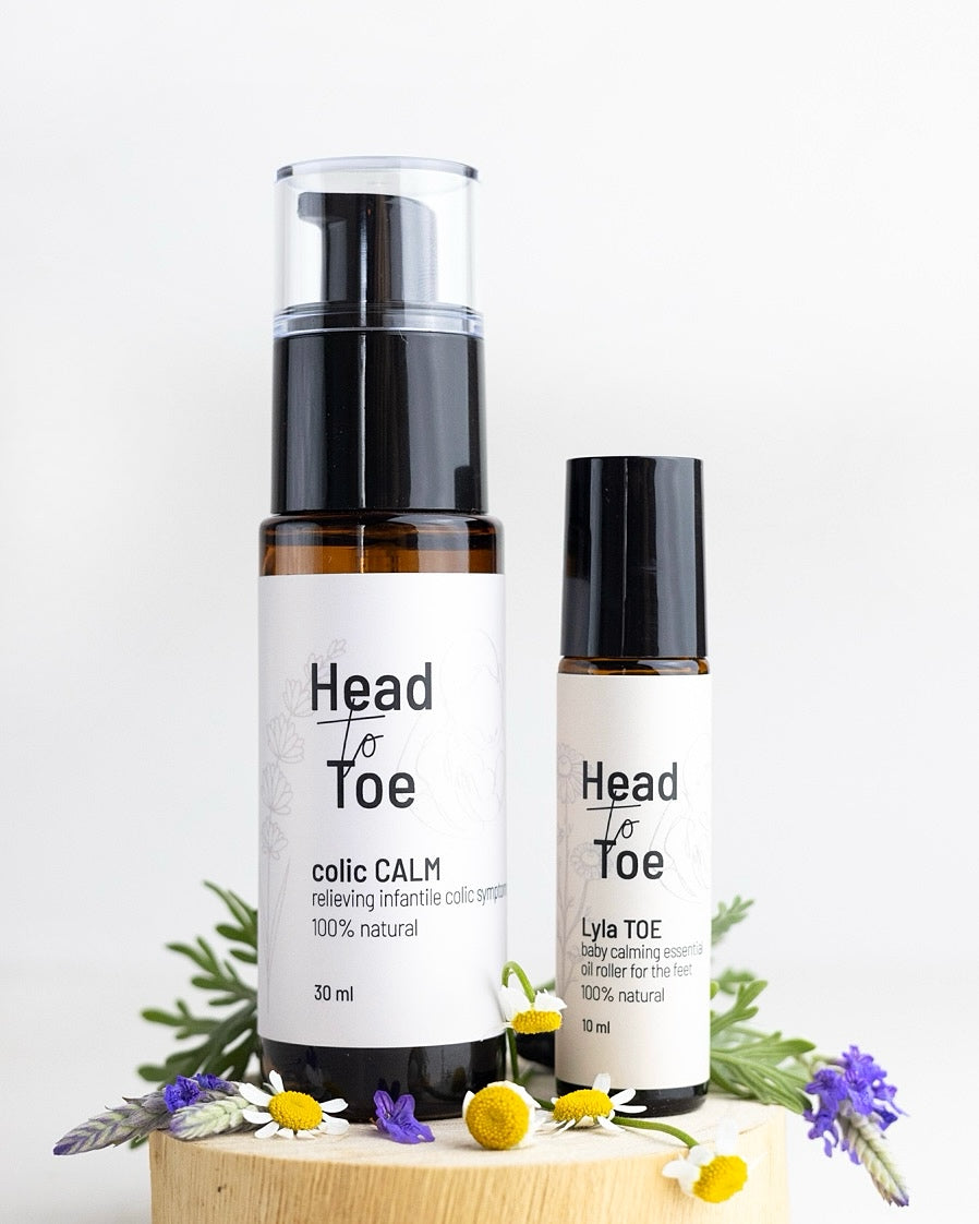 Colic CALM: A soothing formula for gas and stomach discomfort. The oils in this blend absorb gas, ease cramps, and relieve pain, while also supporting the development of the digestive system. 30ml